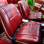 The captivating Garnet Mist exterior shimmers under the sun, highlighting the Starfire's sleek, aerodynamic lines. This unique color, combined with the chrome accents and iconic Oldsmobile grille, exudes a timeless sophistication that turns heads wherever it goes. Step inside, and you'll be greeted by a vibrant red leather interior, impeccably preserved and radiating a luxurious ambiance. This inviting space features a classic dashboard with chrome accents and gauges that speak to a bygone era of craftsmanship.