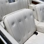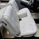 Inside, the Platinum Beige interior takes center stage, enveloping occupants in an ambiance of opulence. The spacious cabin boasts plush seating that cradles passengers in comfort, while the dashboard presents a symmetrical arrangement of controls and dials, marrying function with design. The attention to detail within the interior speaks of a time when craftsmanship was paramount.