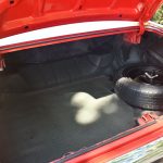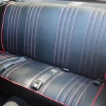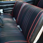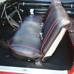 Step into the interior, and you're met with a striking black cabin adorned with red stripes, evoking a sense of sporty elegance. The seating exudes comfort, hugging occupants during spirited drives while offering a glimpse into the car's performance-oriented character. Chrome accents punctuate the dashboard, housing an array of analog dials that provide essential information in a style that only the '60s could deliver.